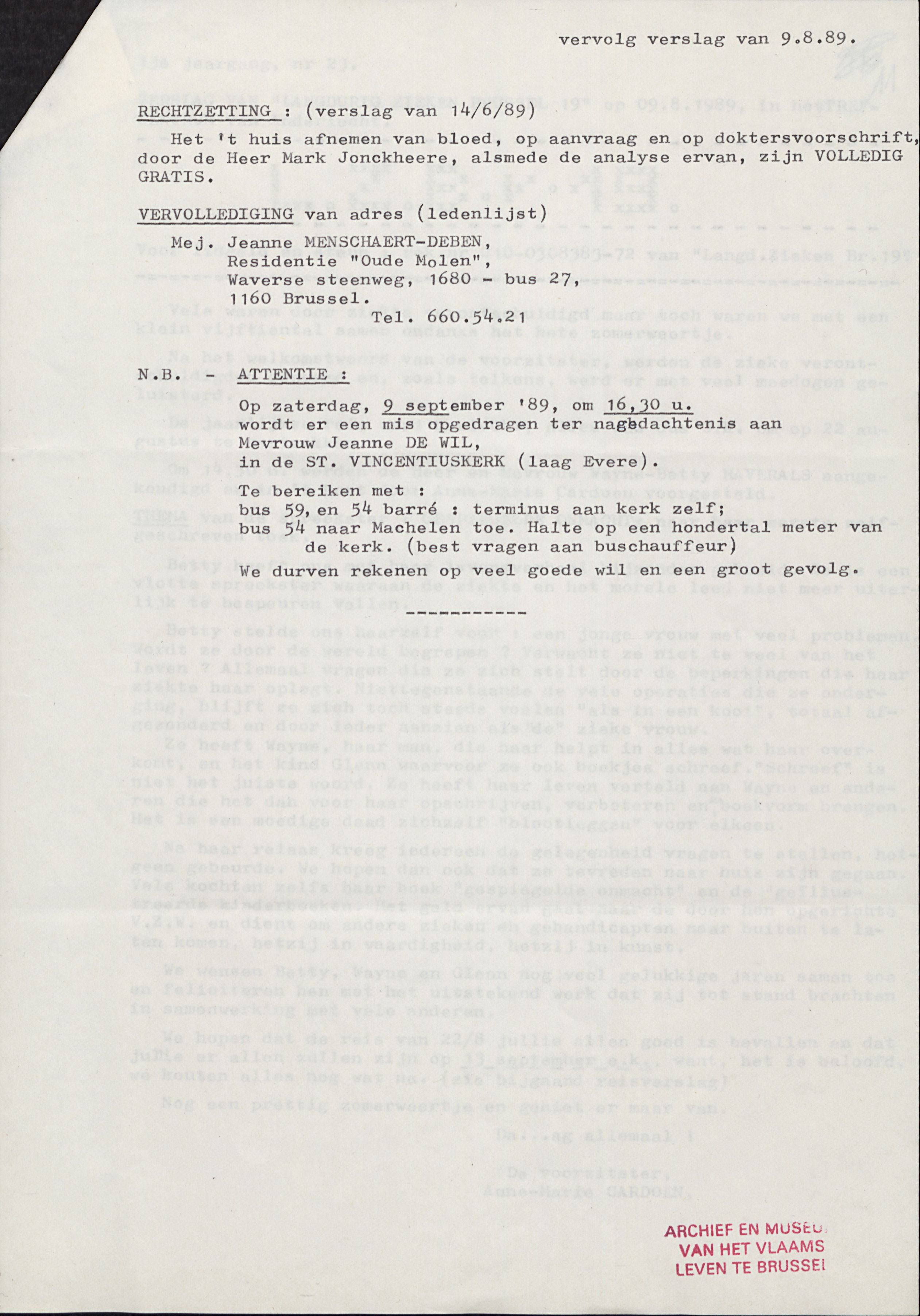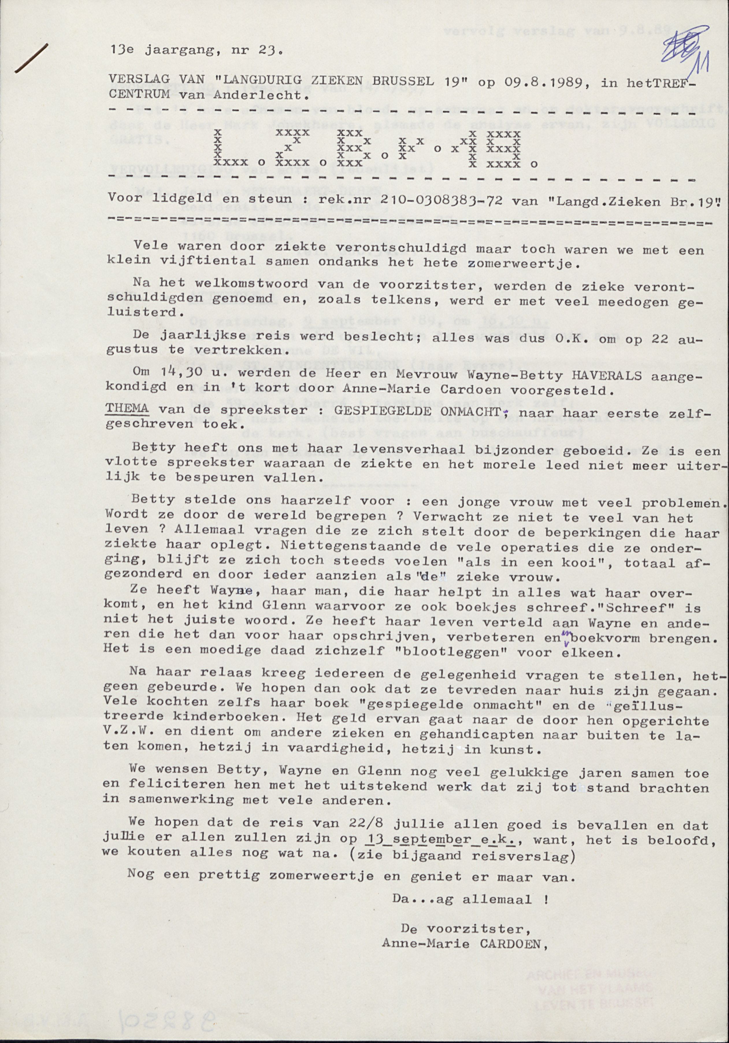 Juist die eenvoud maakt de documenten die vandaag bewaard worden in het AMVB zo bijzonder. Ze tonen niet alleen dat deze groep bestond, maar ook hoe ze werkte, welke zorgen en thema’s leefden, hoe mensen zich organiseerden en welke woorden ze zelf kozen om hun situatie te benoemen. Het zijn geen afstandelijke bronnen, maar heel directe, menselijke getuigenissen van een tijd waarin langdurig zieken vaak geïsoleerd leefden en waar lotgenotencontact, solidariteit en lokale betrokkenheid echt het verschil konden maken. In deze kleine stukjes papier zit een wereld van ervaringen verscholen: de strijd voor erkenning, het zoeken naar informatie, het gevoel gehoord te worden en de behoefte om samen sterker te staan.