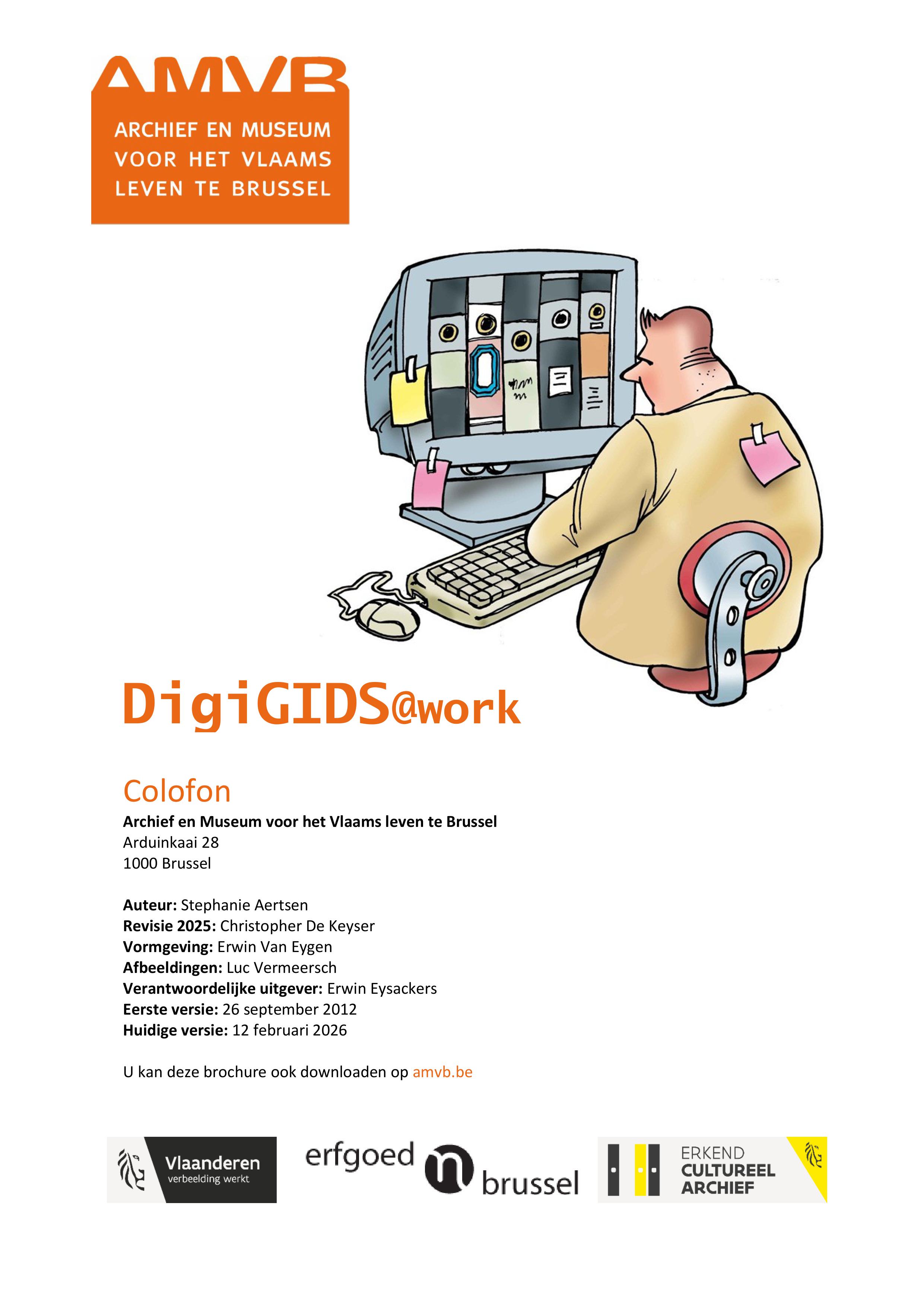Je vindt in de DigiGIDS onder andere algemene informatie over het belang van de duurzame bewaring van digitale documenten, de bedreigingen en risico's die dit mogelijk verhinderen, aandachtspunten om deze bedreigingen te neutraliseren, maar ook praktische tips voor de ordening en selectie van je archief.